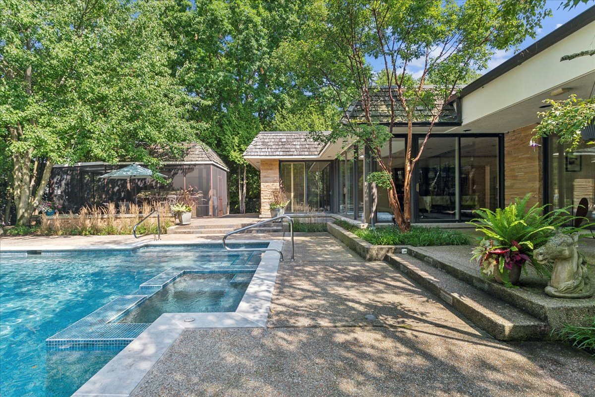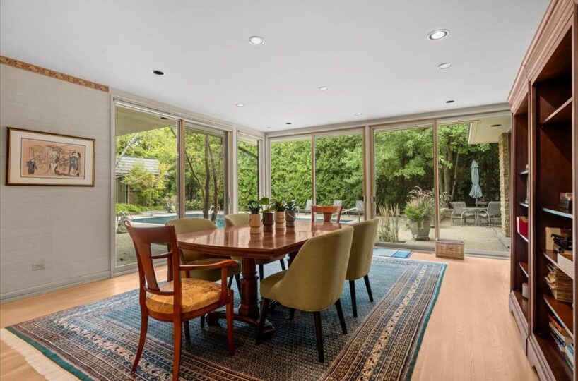 Welcome to this rare and sought-after ranch nestled on a beautifully landscaped 1/2-acre lot on an intimate, tree-lined street in east Glencoe- just steps from the lake with private beach access rights. This impressive residence features an open floor plan with generous proportions and exceptional flow – perfect for everyday living and gracious entertaining. From the moment you step into the expansive foyer you’re welcomed by a sun-drenched Living Room with a wall of windows framing views of the lushly landscaped backyard and beautiful pool with a built-in hot tub. Thoughtful architectural details include high ceilings, skylights and a two-sided flue-less gas fireplace shared by the Living Room and Family Room. The Dining Room, Breakfast Room and Primary Bedroom all offer serene views and direct access to the backyard creating a seamless indoor-outdoor connection. The heart of the home is the oversized Kitchen, outfitted with stainless steel appliances, a large center island and abundant cabinetry. Adjacent, the spacious Breakfast Room opens to a screened outdoor kitchen and patio area- an ideal setup for al fresco dining and summer entertaining. A true standout, the exceptionally large Butler’s pantry offers extensive storage and prep space, adding to the home’s already impressive functionality. Generous closets and storage are found throughout. All bedrooms have an en-suite bath. 2025 – New Composite Roof on house and Pool house & New Washer & Dryer; – 2023 – New Driveway and Front Landscaping, Pool Heater and 2 Twin Furnaces for main part of the house; – 2022 New Sub-Zero Refrigerator and 75 gallon Hot Water Heater. The Pool was resurfaced and re-tiled about 8 years ago. The washer and dryer are in the 4th bedroom and probably could be closed off if someone wanted to do that. The room is spacious, has a closet and attached full bath. The property is being SOLD AS IS. With its ideal layout and unbeatable location just steps from the lake, this special home is a rare opportunity in East Glencoe.
